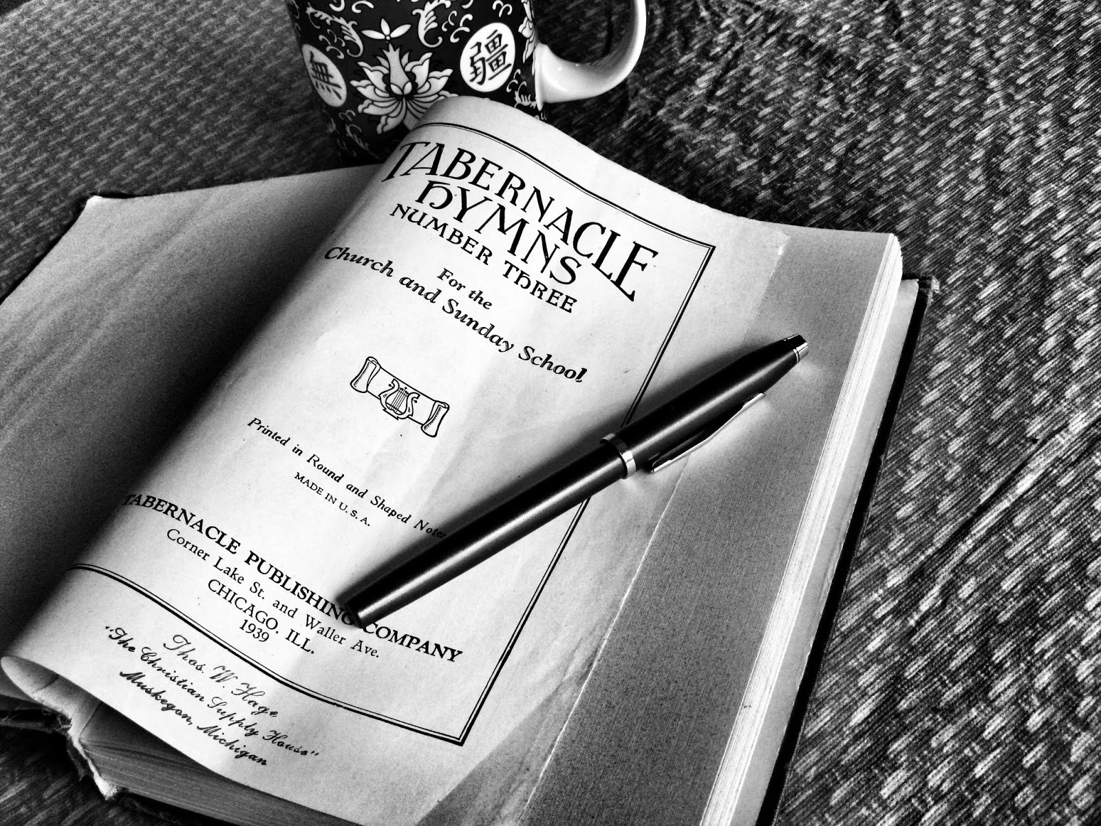 I chose an old hymnal. I love the color and the nostalgia. I picked this one: Tabernacle Hymns Volume 3, circa 1939.