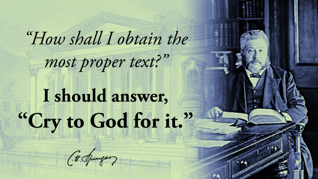 So how can we assure ourselves victory in this weekly battle? Spurgeon gives us his answer in the chapter titled “On the Choice of a Text” within the book titled Lectures to My Students.
